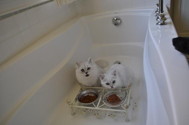 (right) Mozart & Chanel worked up an appetite. (Picasso their doggie noses in for the shot.)